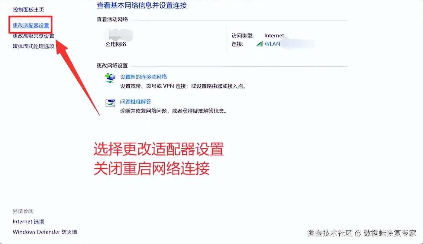 如果网络连接和设备都没有问题,那么我们需要检查电脑的网络设置。当显示电脑联网但无法上网时,很有可能是网络适配器没有启用,或者限制了访问。你可以打开电脑的控制面板,进入 【网络和共享中心】 ,点击左侧 【更改适配器设置】 ,然后查看网络连接,选择关闭再重新启用。