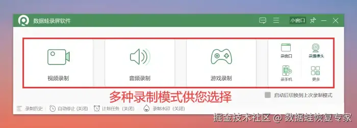 Windows和Mac自带的录屏工具虽然使用简单快捷,但它们都存在明显的缺点。除了自带的电脑录屏工具外,市面上还有许多专业的第三方录屏工具。其中,数 据 蛙录屏软件就是一款备受推崇的软件。它支持Windows和MacOS系统且拥有丰富的高级功能,具有以下几个显著的优点: