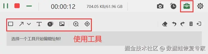 第三步:录制过程中,可以打开并使用工具箱里的工具对视频进行实时的编辑与绘制。