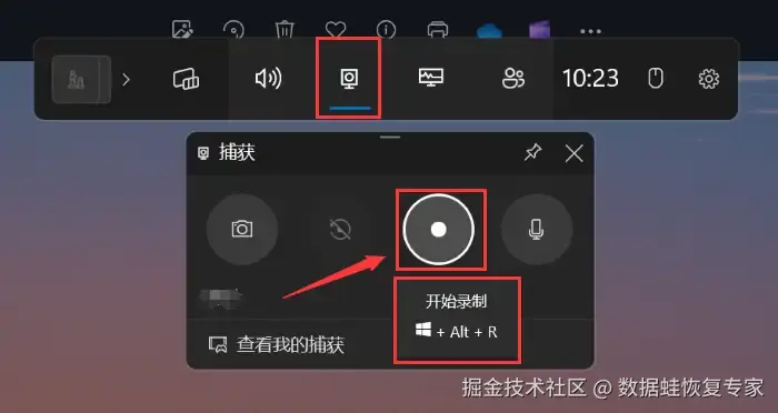 第三步:电脑录屏是按哪三个键?也可使用热键 【Win+Alt+R】 进行快速录制。