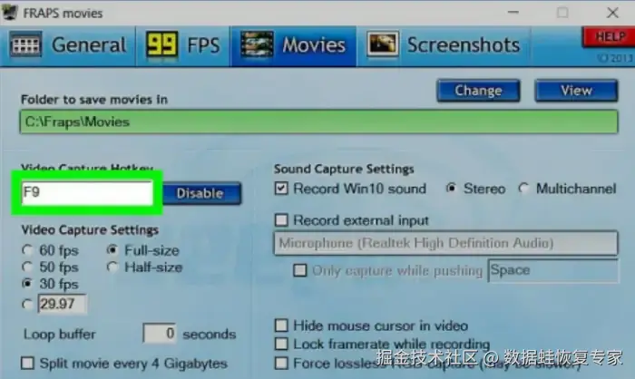 游戏录屏软件4:Fraps