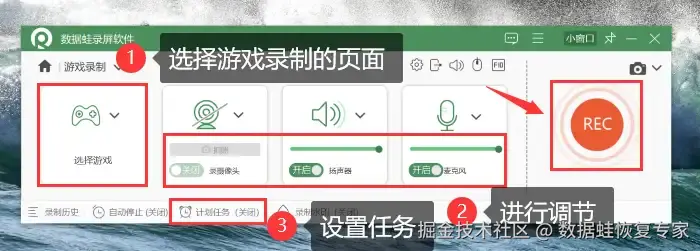 以下是使用数 据 蛙录屏软件进行游戏录屏的操作步骤: