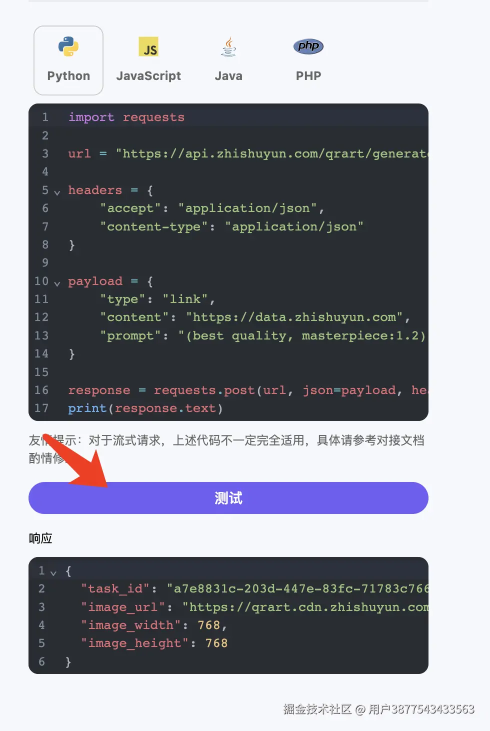 本平台提供了艺术二维码相关生成 API,我们可以调用 API 输入各种参数,比如图片内容、二维码链接、样式风格等等各种参数,就可以非常方便地生成想要的艺术二维码了,而且首次申请免费赠送 20 张绘制次数。