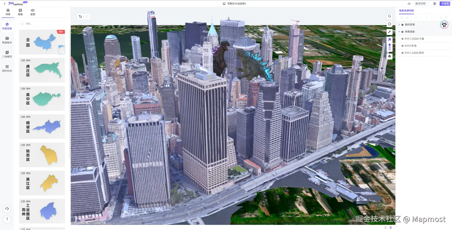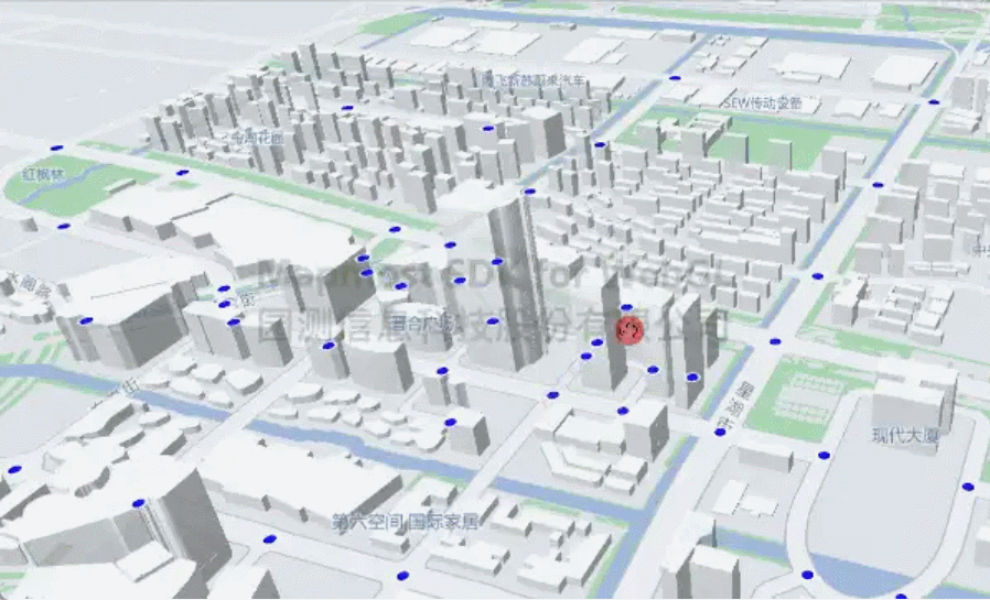 点、线、面搞定了,我们来玩点高级的。Mapmost WebGL SDK不仅能处理这些基础图层,还能轻松搞定更复杂的三维模型、影像、地形和倾斜视角。