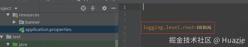 首先,我们在当前 Spring Boot 项目中设置当前的日志级别为 DEBUG【当然还可以指定其他日志配置文件,这里不展开讲了】: