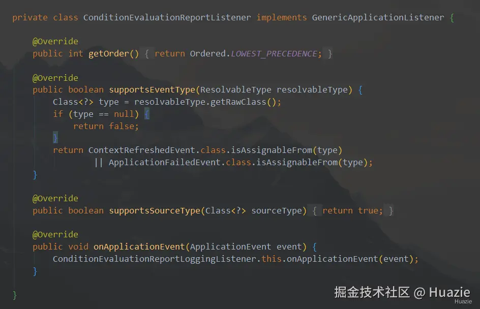 我们先来看看 ConditionEvaluationReportLoggingListener 的部分源码,如下:
