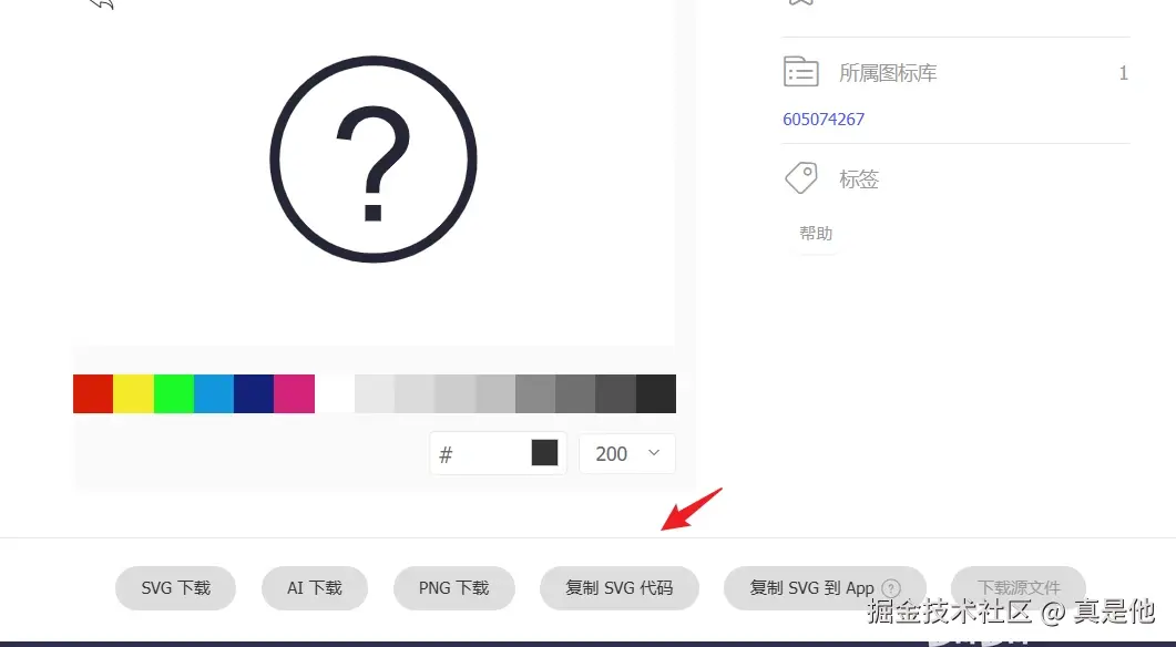 进入网站选取需要的icon,点击下载 -> 复制SVG代码 到文本。
