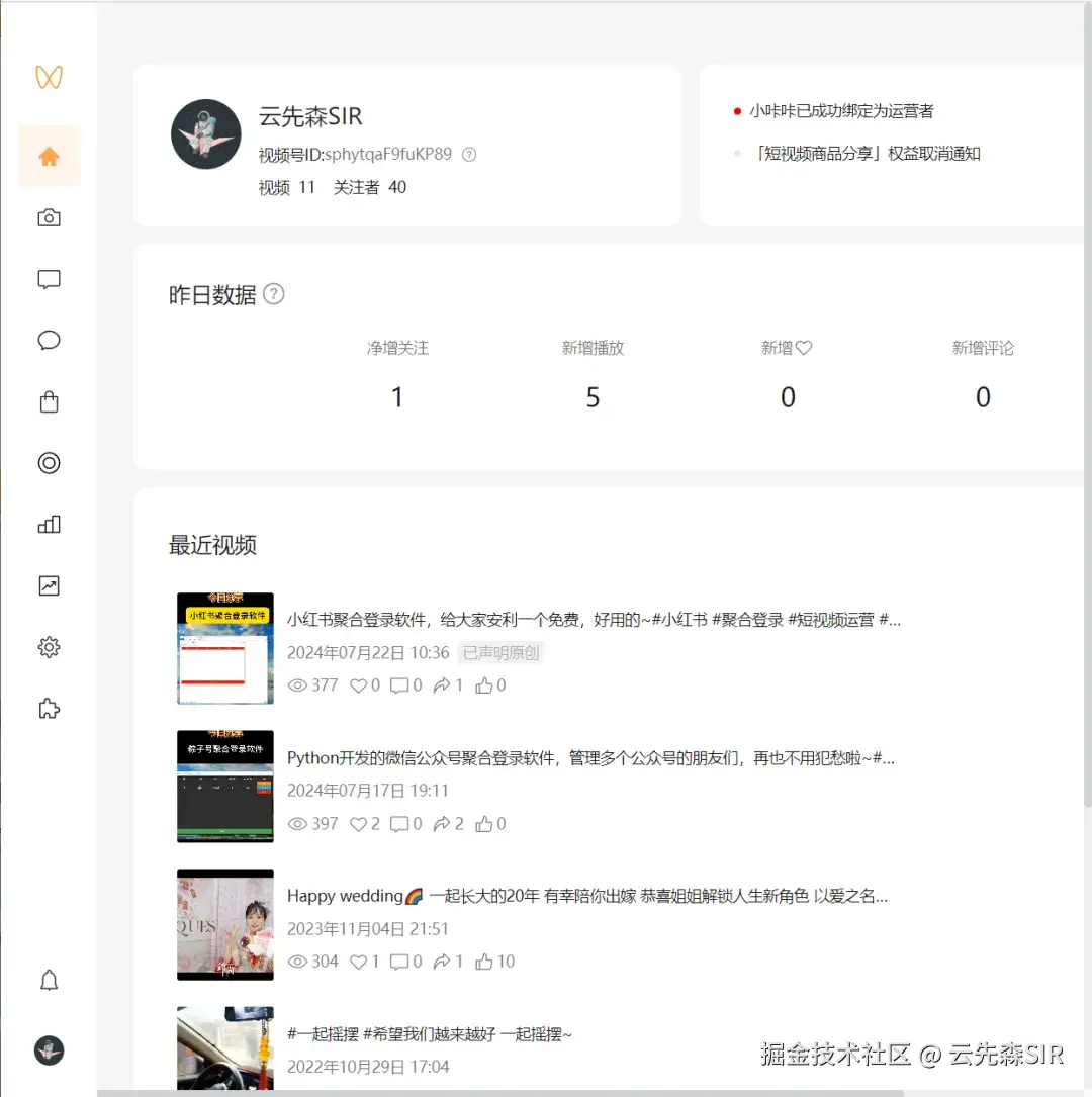 视频号聚合登录软件:适用于视频号平台,支持多账号登录与管理, 方便内容创作者和运营者高效处理多个账户的需求。