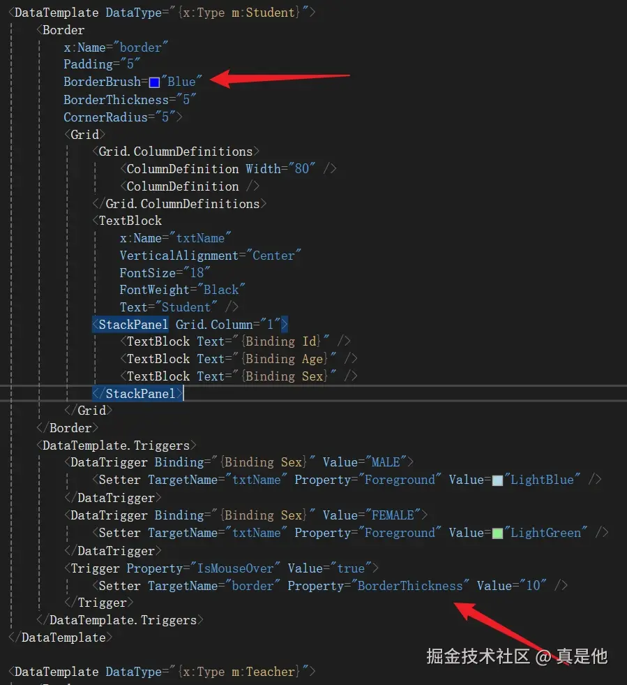 感觉数据模板最重要的用法就在于可以在同一个列表控件中,根据数据类型的不同来展示不同的数据模板。