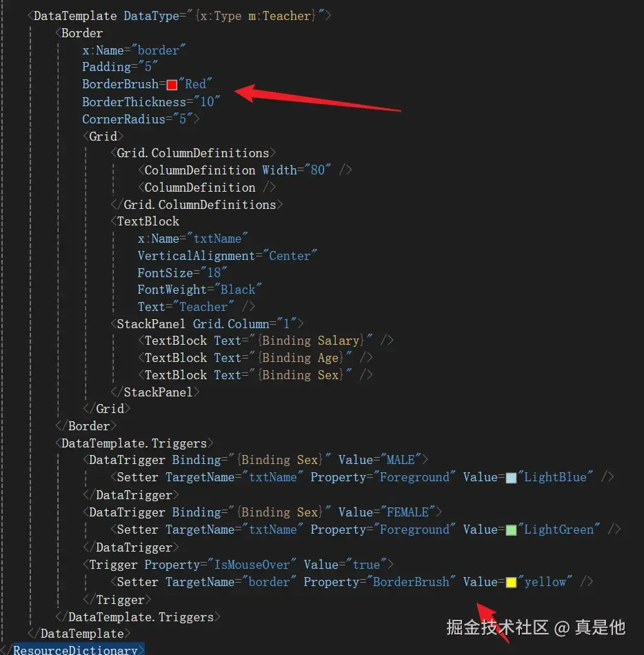 <Setter TargetName="border" Property="BorderBrush" Value="yellow" />