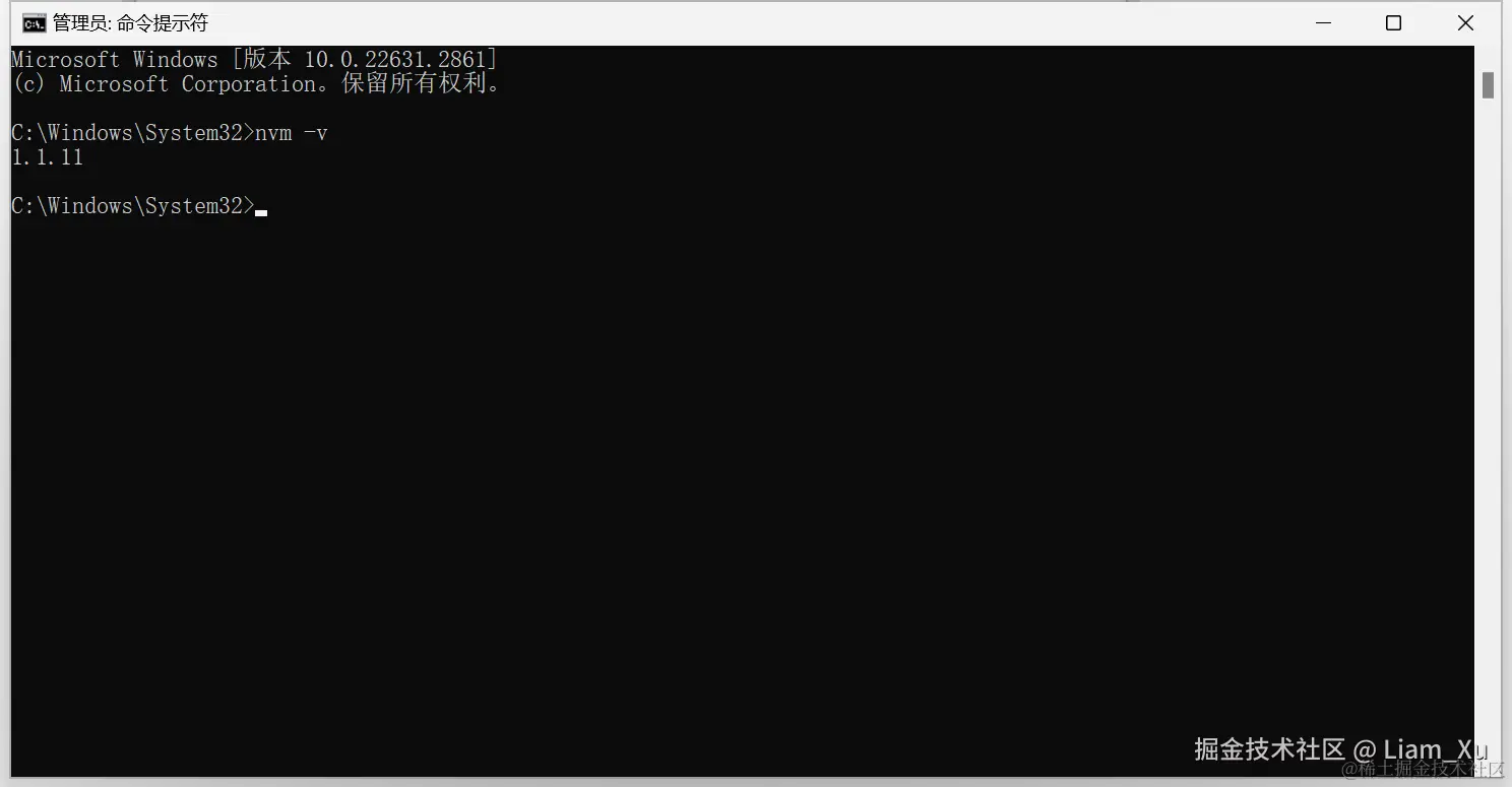 使用命令行(可选管理员身份运行),执行 nvm -v 查看。