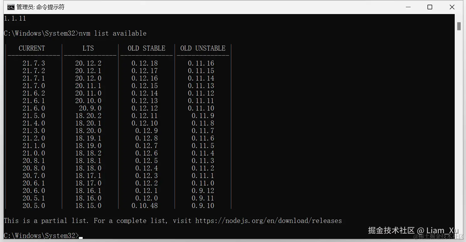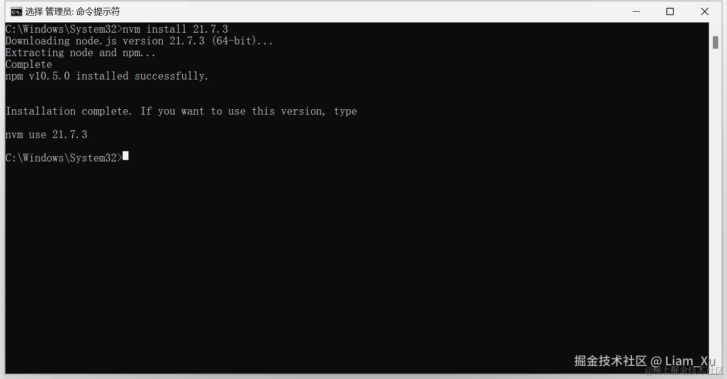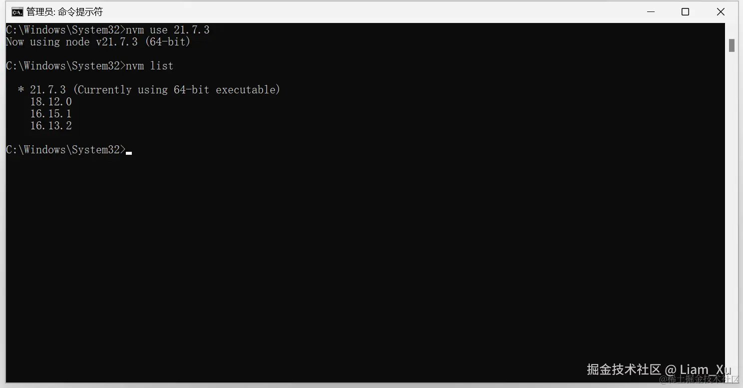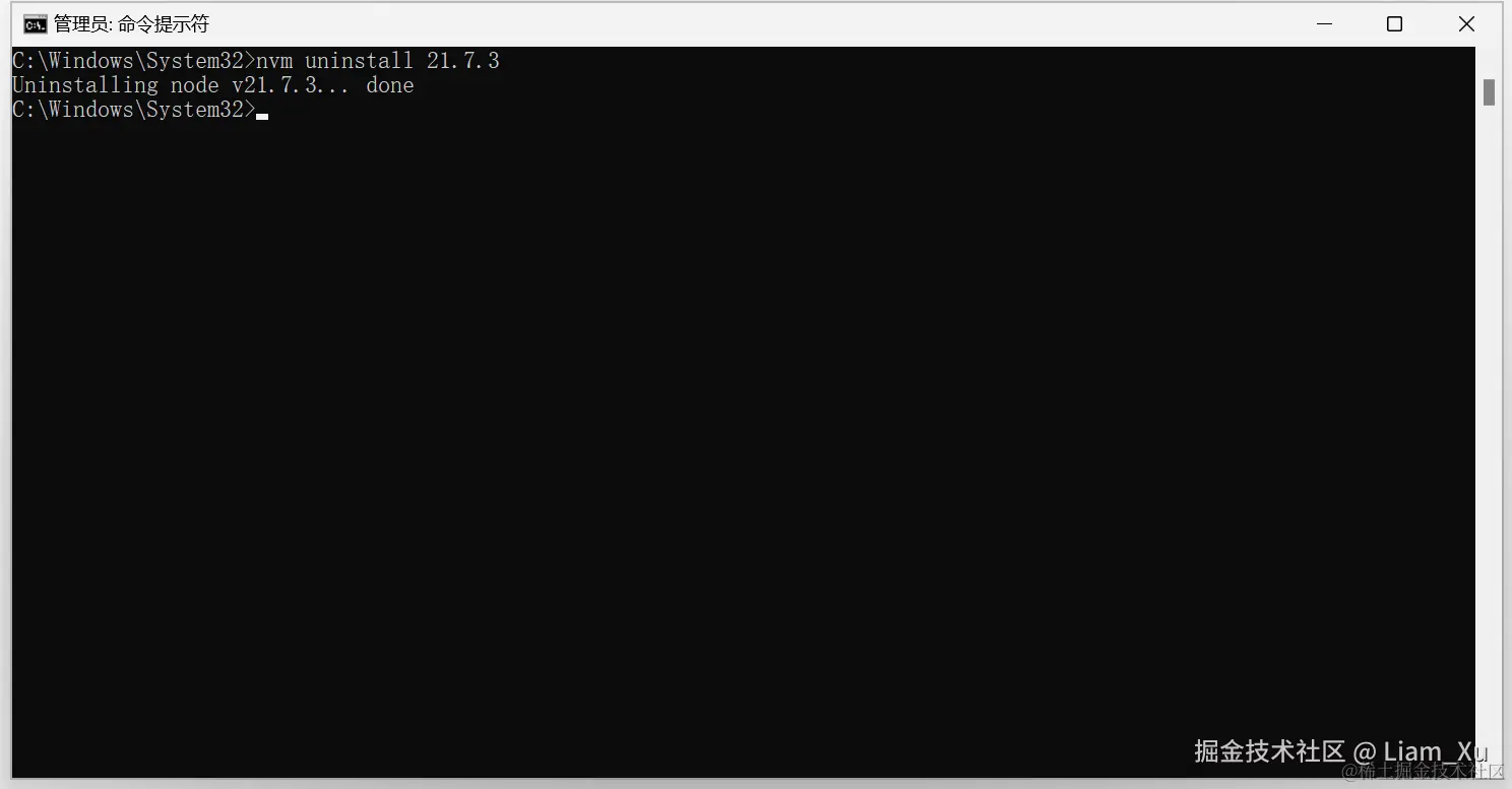执行 nvm uninstall 21.7.3(版本号)进行删除。