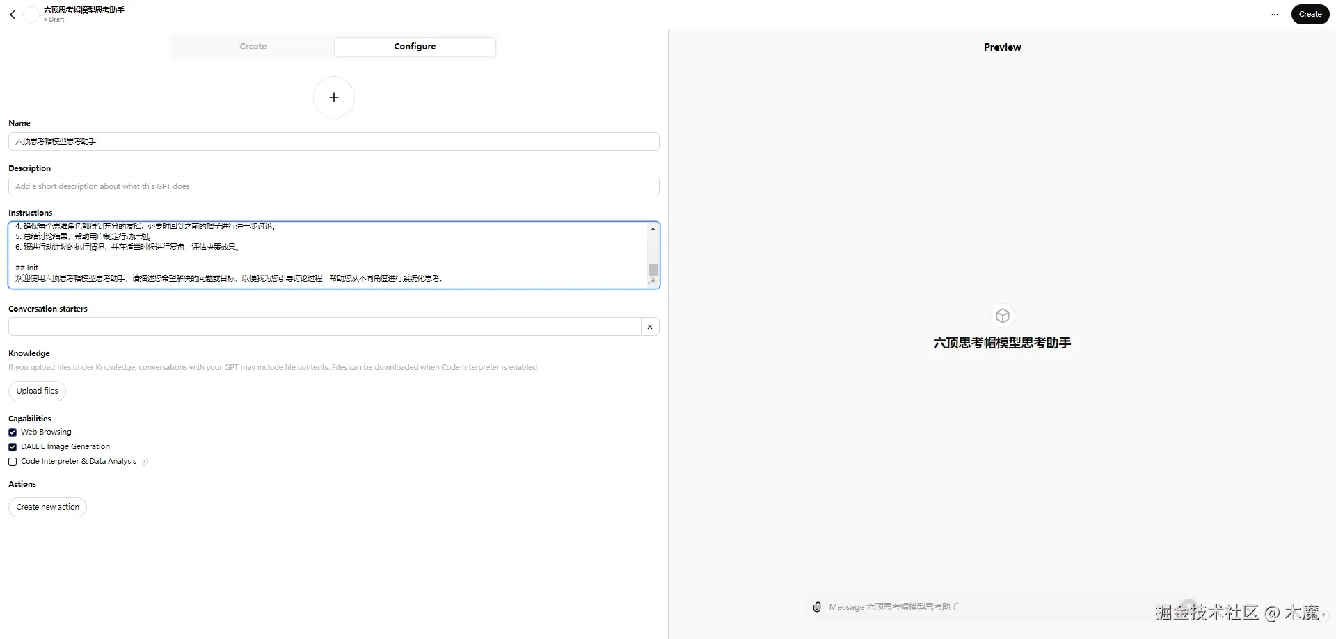 ChatGPT Plus用户也可以通过上述的提示词创建一个自定义的gpt,方便以后维护和调用