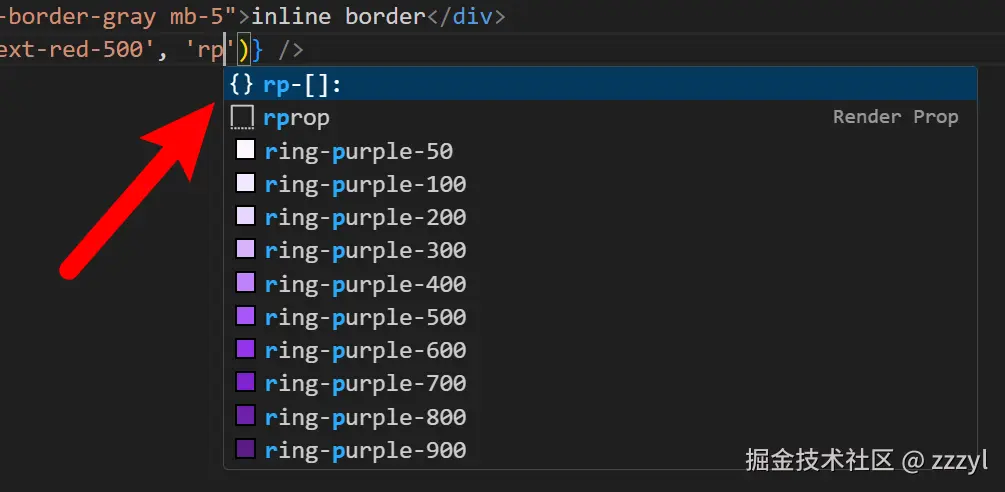 这时候我们去写代码的时候就会发现有提示了(前提是你安装了tailwindcss的插件),如果没有 reload 一下你的vsCode。
