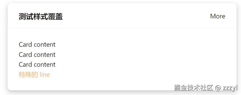 <Card title="测试样式覆盖" extra={<a href="#">More</a>} className="w-[500px]" hoverable>