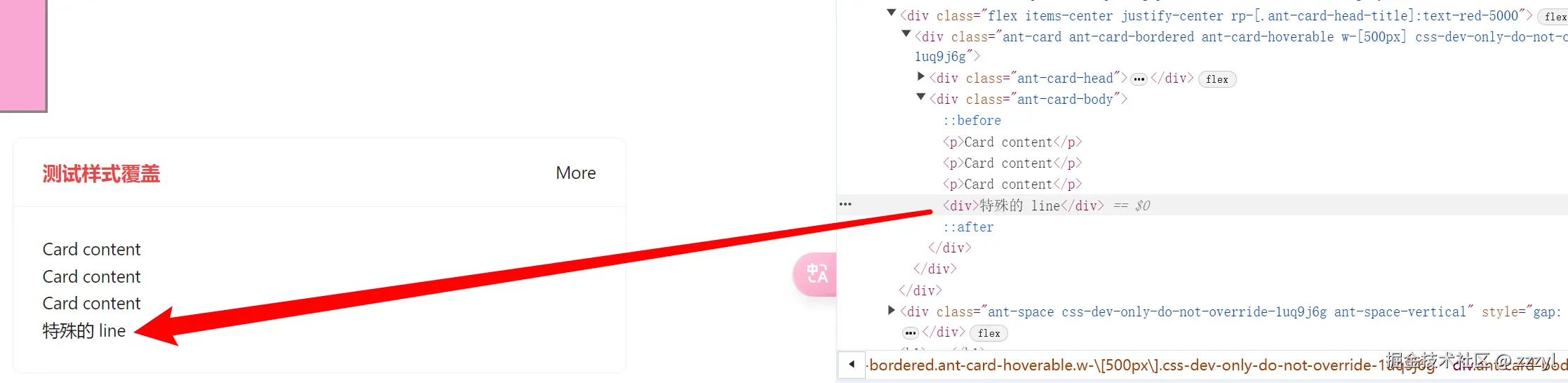 :is(.rp-[.ant-card-head-title]:text-red-500 .ant-card-head-title) is是伪类选择函数,其实这里用不用is是一样的,不用纠结这个。可以看到这里就是和我们上面自己用css写样式覆盖的原理是一样的。