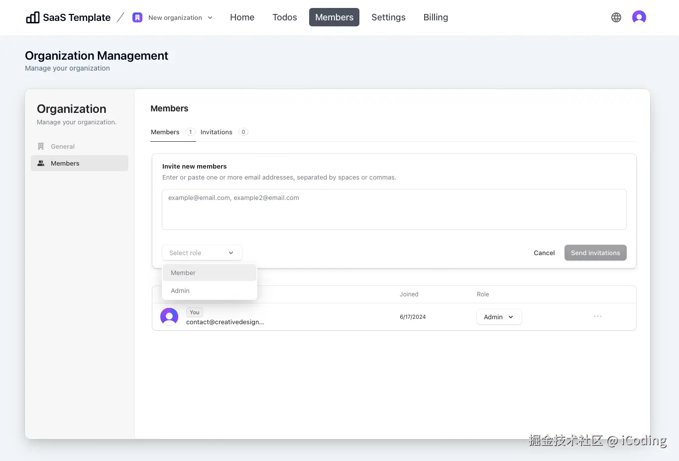 强大的 SaaS 应该支持团队或组织内部的协作。Clerk 提供了一个全面的多租户和团队管理系统,包括用于管理团队和邀请用户的完整 UI。这意味着我不需要为团队管理实现后端逻辑或 UI,因为 Clerk 会处理所有事情,包括发送邀请电子邮件和允许用户在团队之间无缝切换。