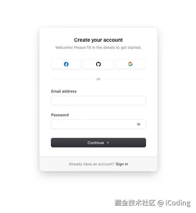 身份验证是任何 SaaS 的关键部分。我使用 Clerk 进行身份验证,它提供了全面的功能,例如电子邮件/密码和社交登录。这些基本功能在许多开源库中都可用。
