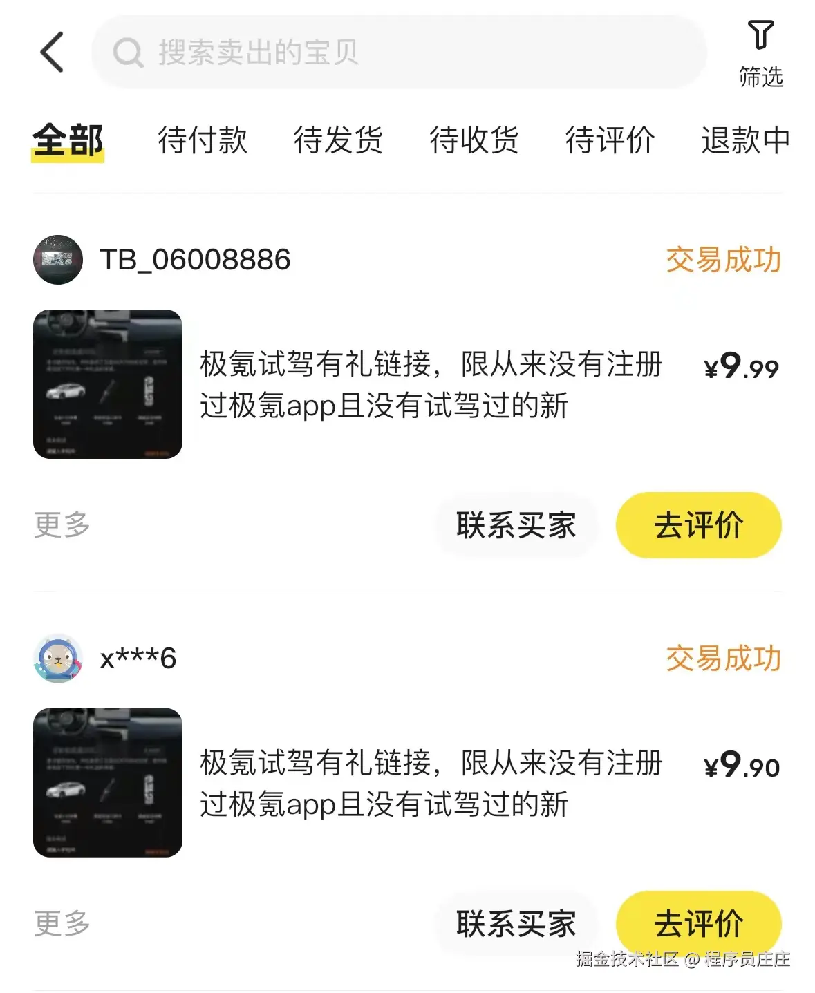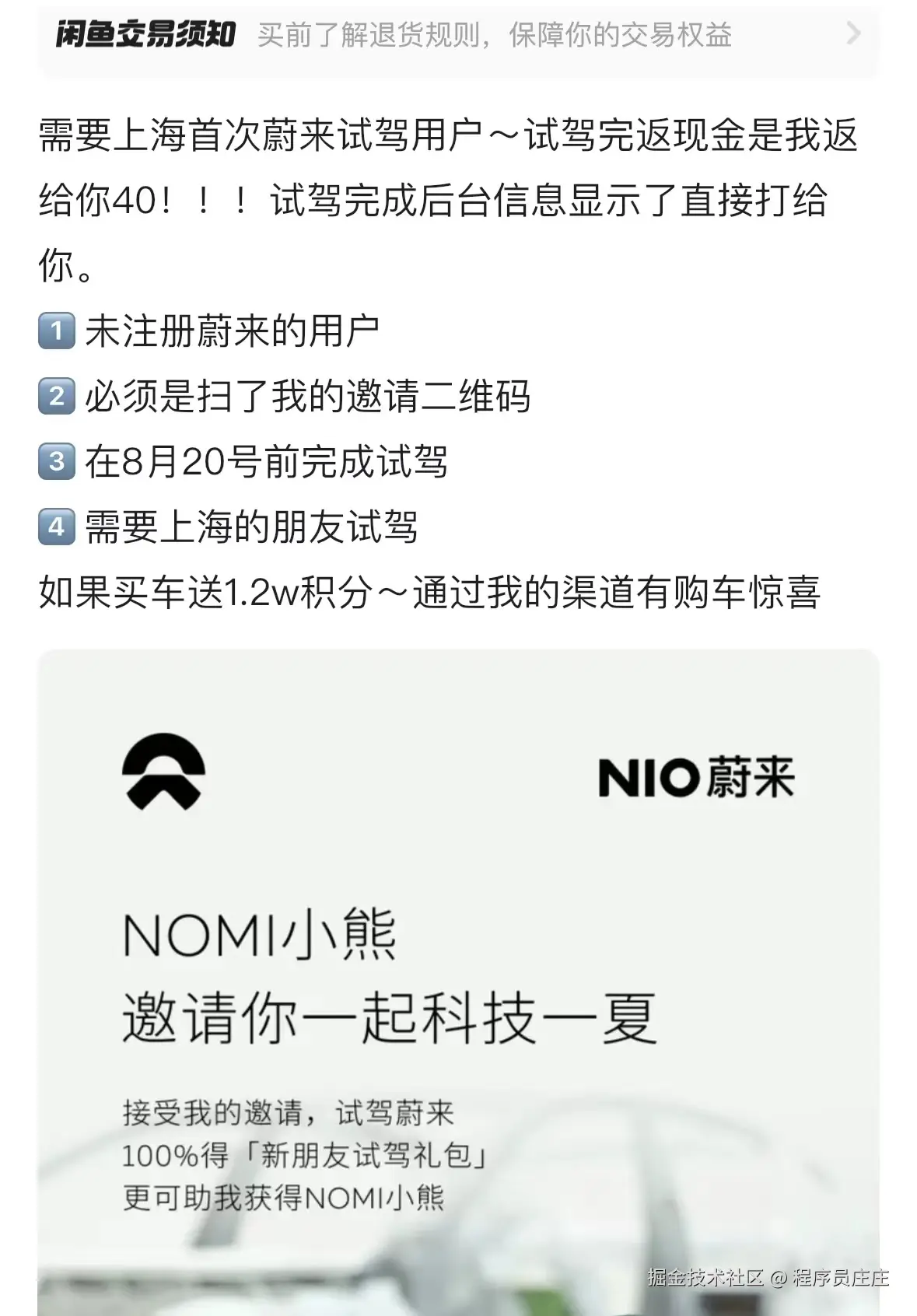 试驾一轮后,我发现试驾福利也是有一些信息差的,有一些东西我知道别人不知道,我就能拿出来卖钱,于是 3 2 1闲鱼上链接,没想到还真能卖出去两单,又能奖励自己一个DQ了。
