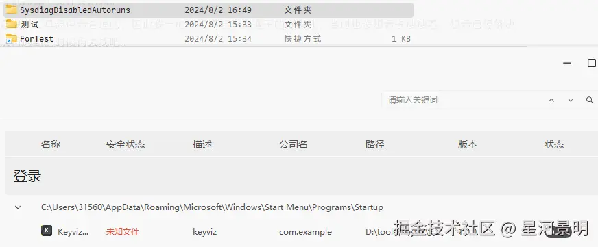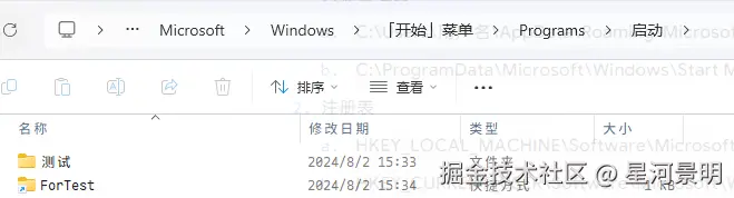 当时脑子里忽然想起来还有个地方没看过——Windows 自带的开机自启动文件夹。