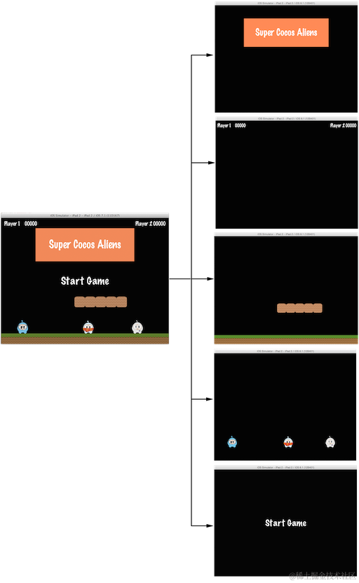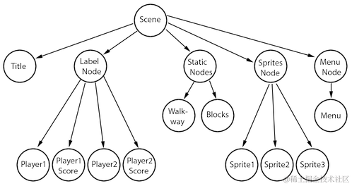 分解一下这个UI界面,看一下它有哪些元素,发现它是由很多有层次的节点(Node)组成: