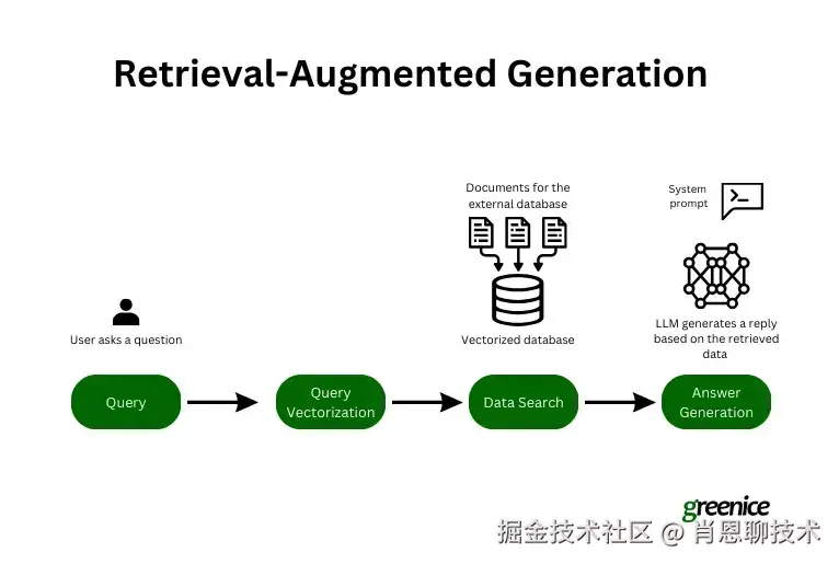 检索增强生成(Retrieval-Augmented Generation, RAG)是一种人工智能技术,它通过整合外部最新信息来增强生成式模型的能力。RAG技术允许AI系统访问实时数据,从而提供更准确和相关的响应。它涉及几个关键步骤:用户提出问题、AI将问题转换为向量、检索相关数据、生成答复。