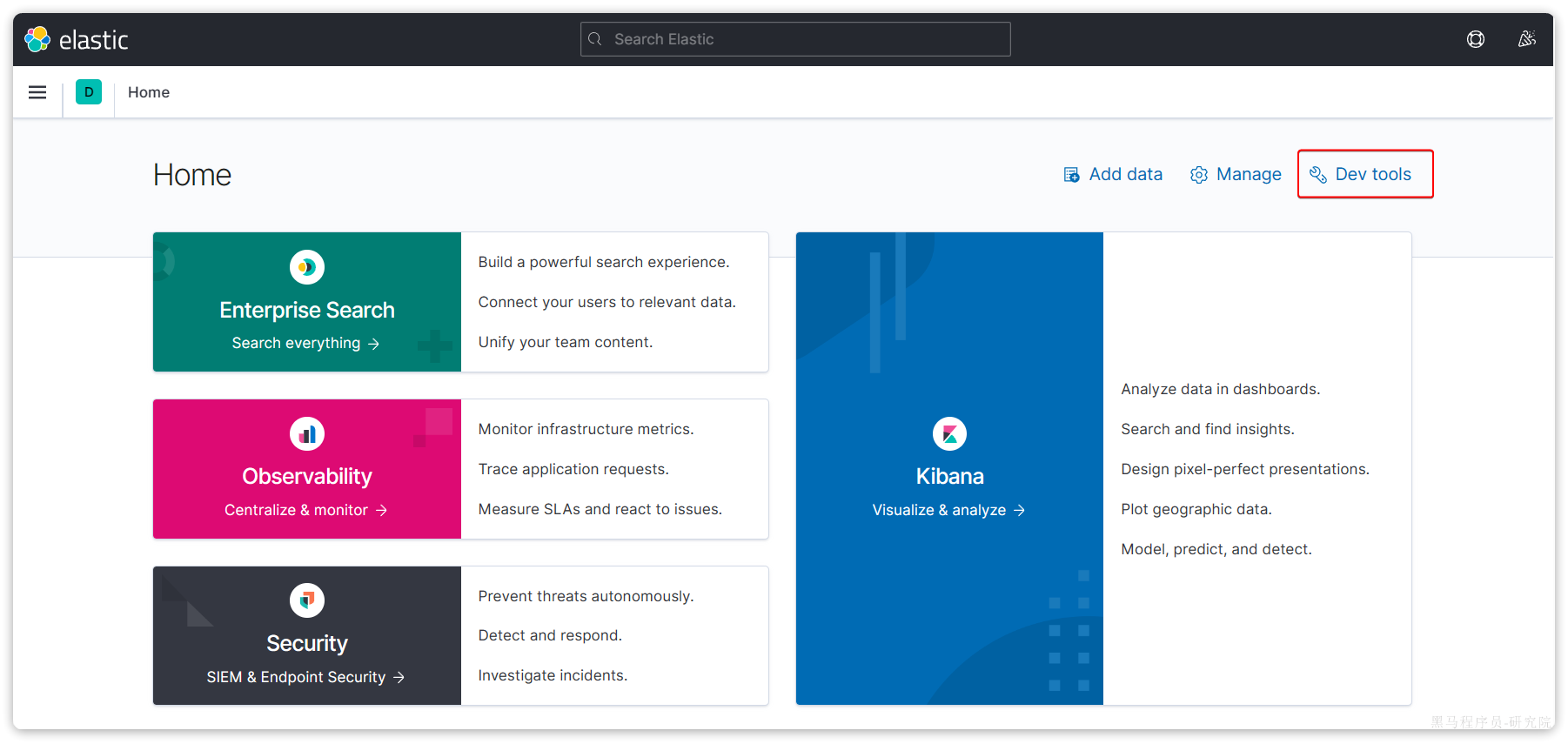 安装完成后,直接访问5601端口,即可看到控制台页面: