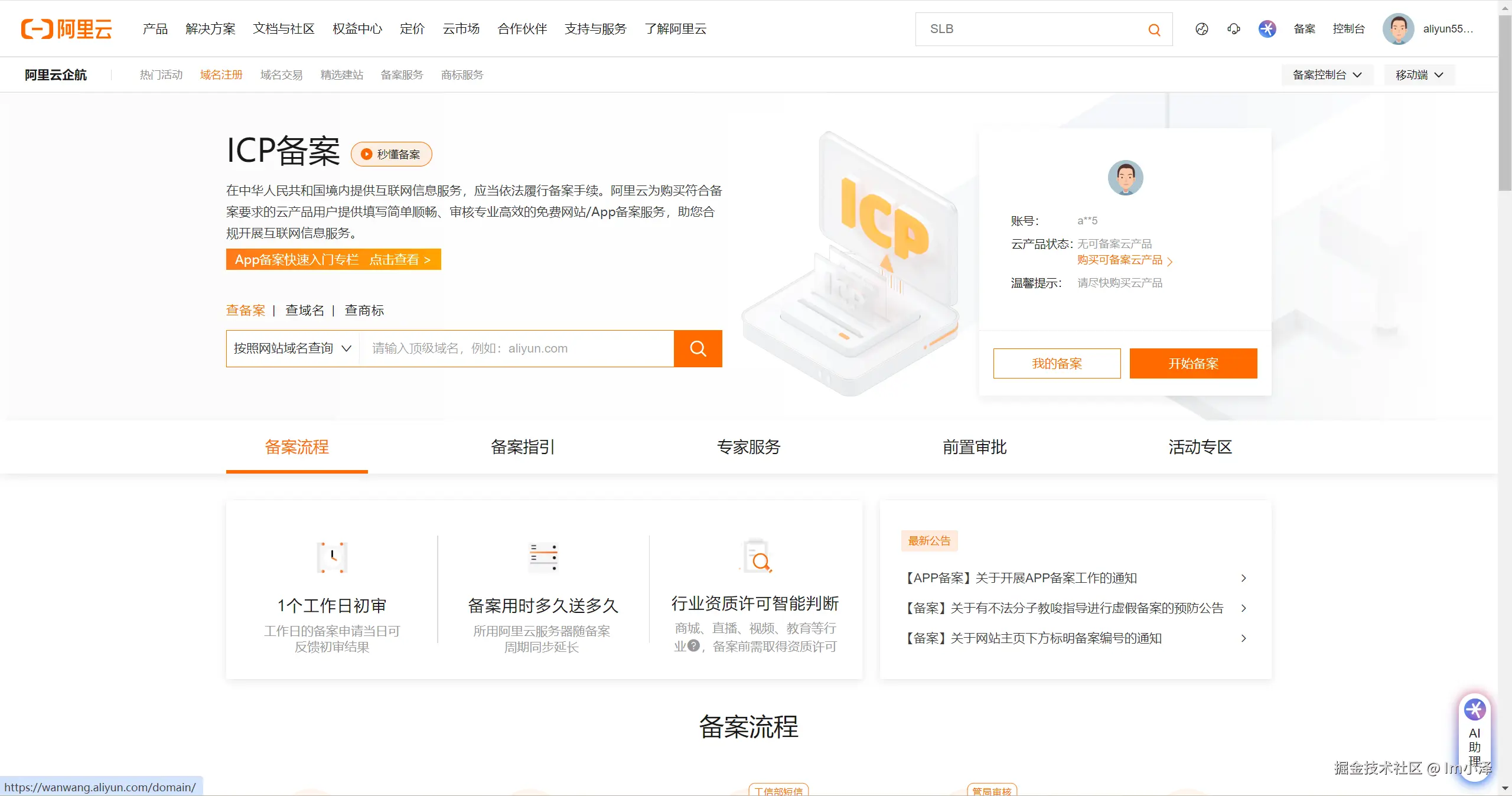 备案在国内而言基本上是必不可少的产品或者说业务,可以说只要使用国内服务器,就必须需要备案,所以说各家厂商基本上都把备案放在了一个比较显眼的位置,那就是各个页面的右上角,无论是控制台还是其他的产品介绍页都能快速的找到入口,但是即便是这样依然有人找不到备案入口(嗯?)