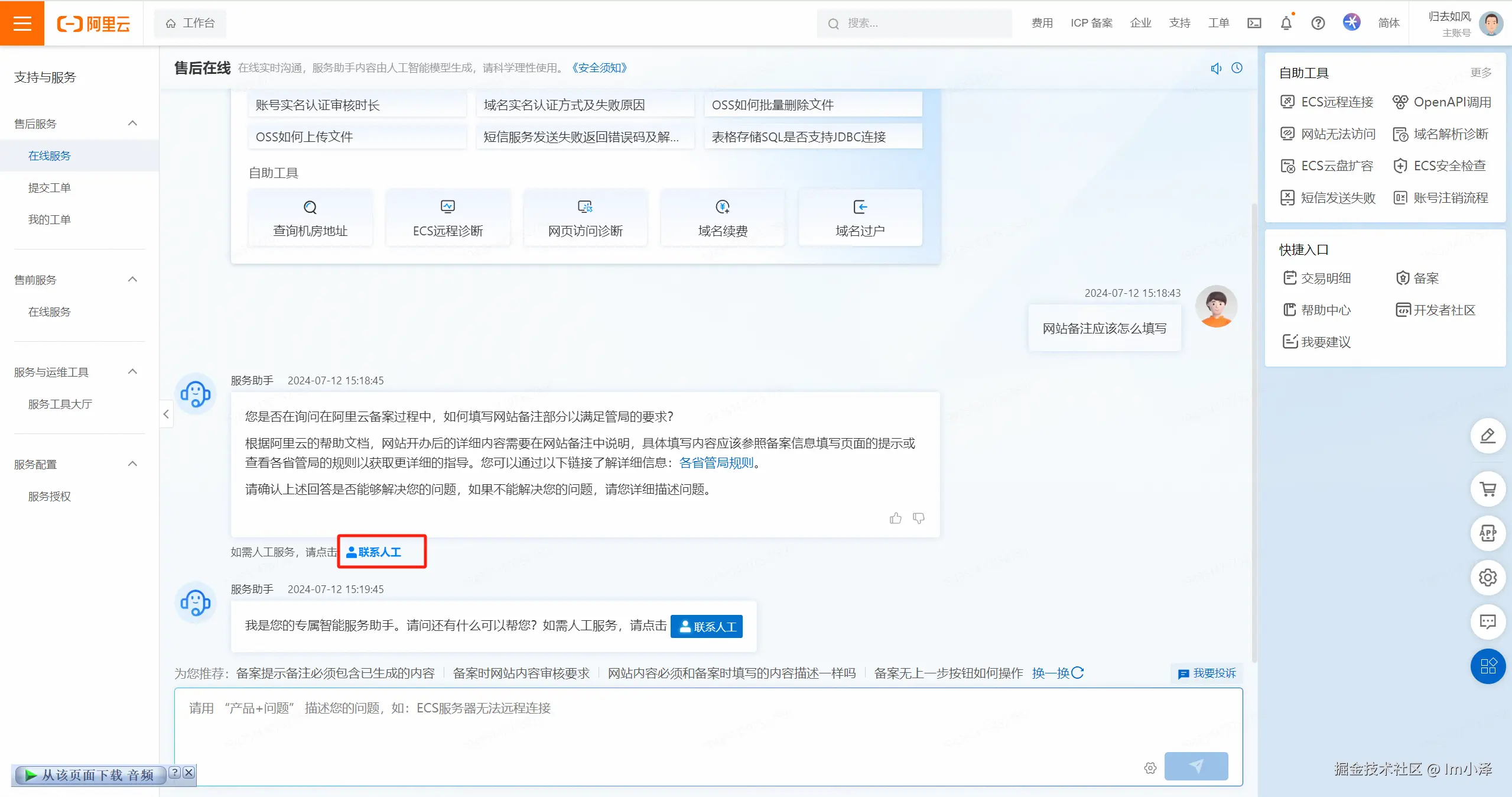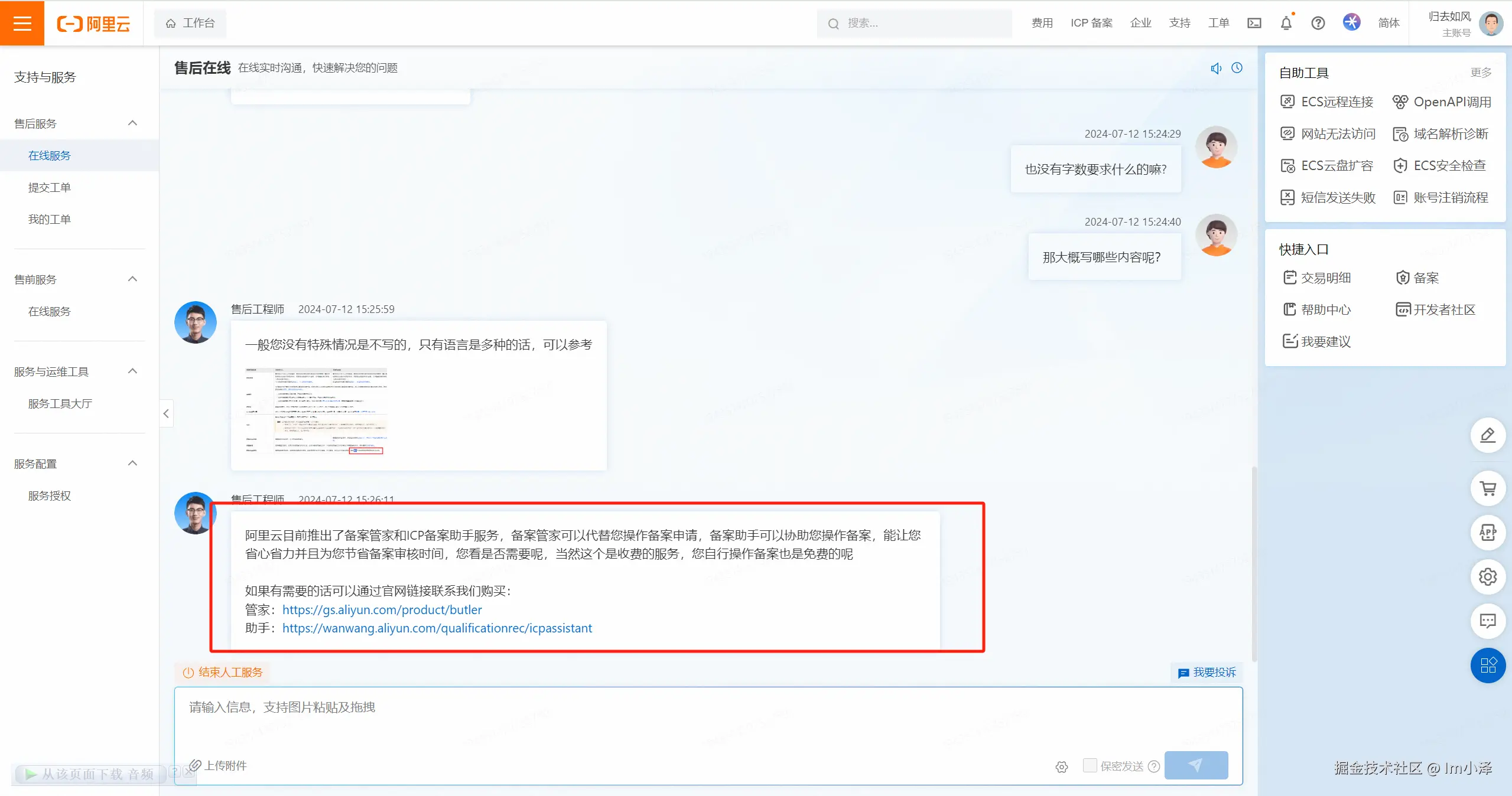 其他方面不再多说了,差异化不大,但想吐槽一下阿里的人工回复,先不论方案的准确性,但阿里似乎对备案管家(收钱)有一种执念,嗯,emmm,不多说了:
