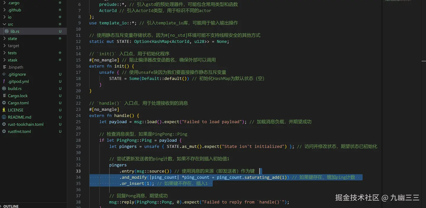 整个工程框架文件就构建完毕了。主要代码就在src的lib.rs里面,io的lib.rs输入口模板。tests是测试文件