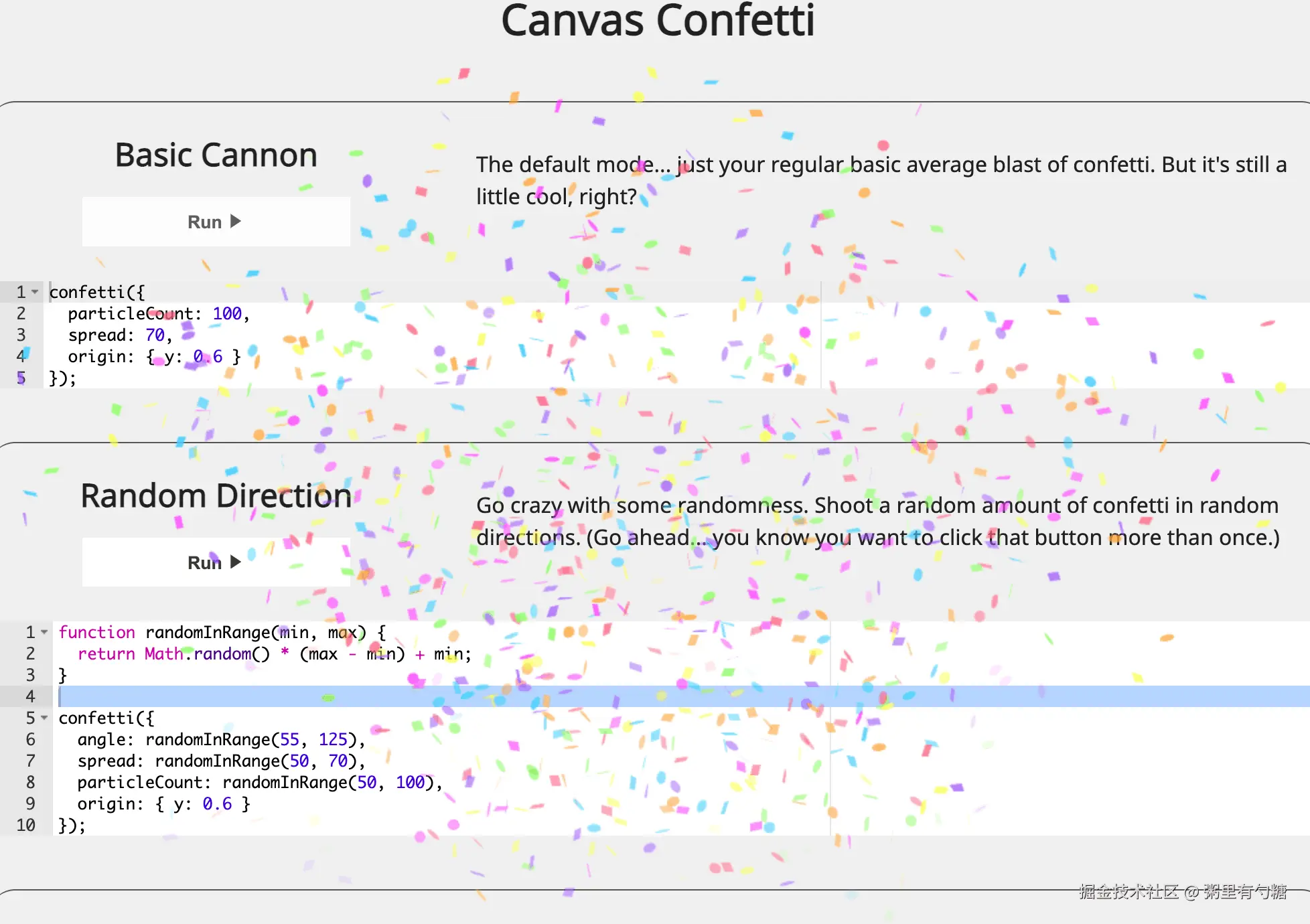 4. canvas-confetti - 纸屑动画