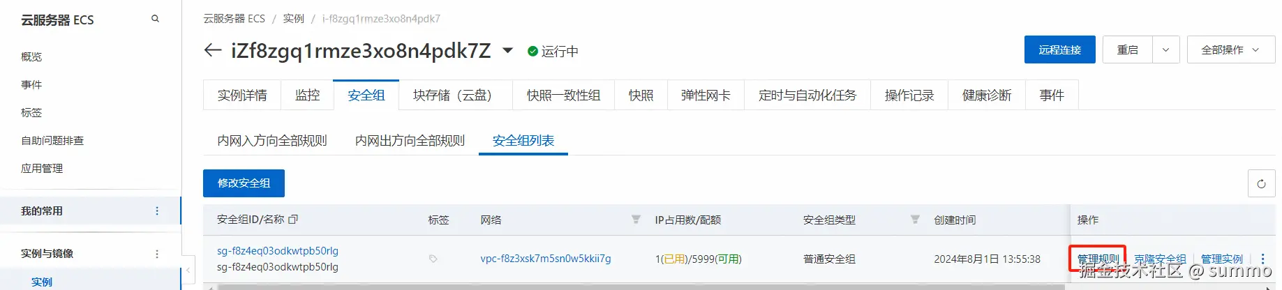 安全组规则,这个东西很多同学都不太清楚,我简单说一下:ECS安全组就是防止大家乱开放端口导致自己的服务被攻击,给大家做的一个兜底保护。