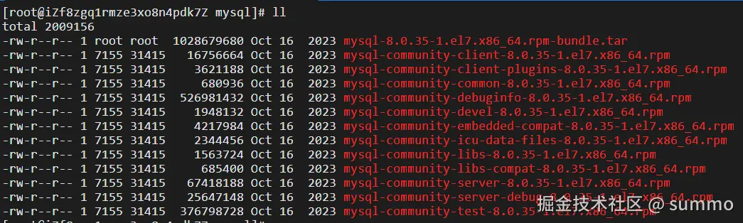 tar -xvf mysql-8.0.35-1.el7.x86_64.rpm-bundle.tar