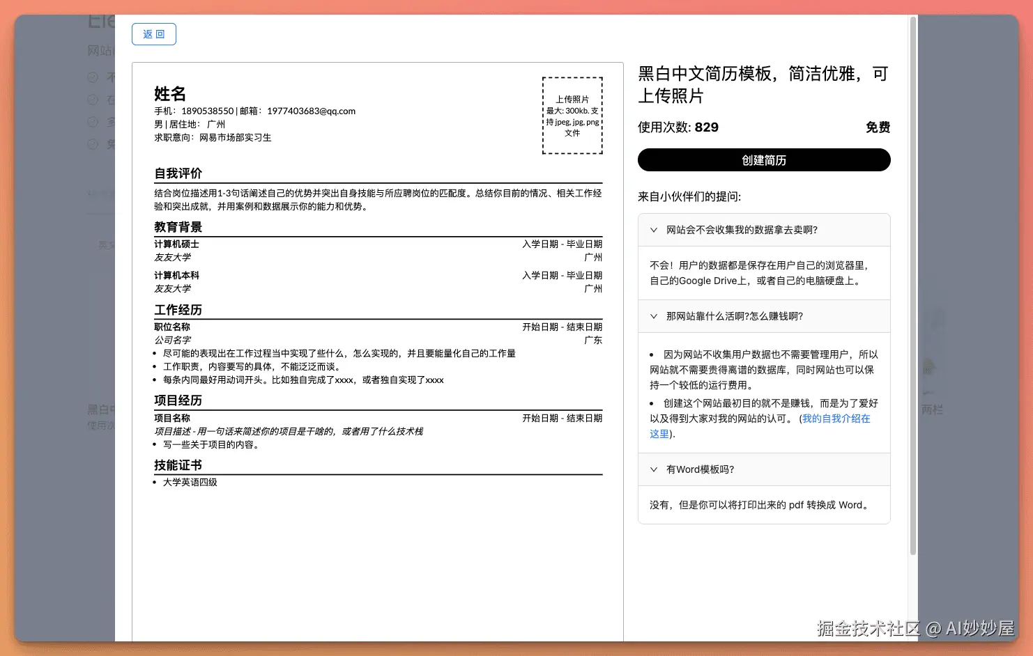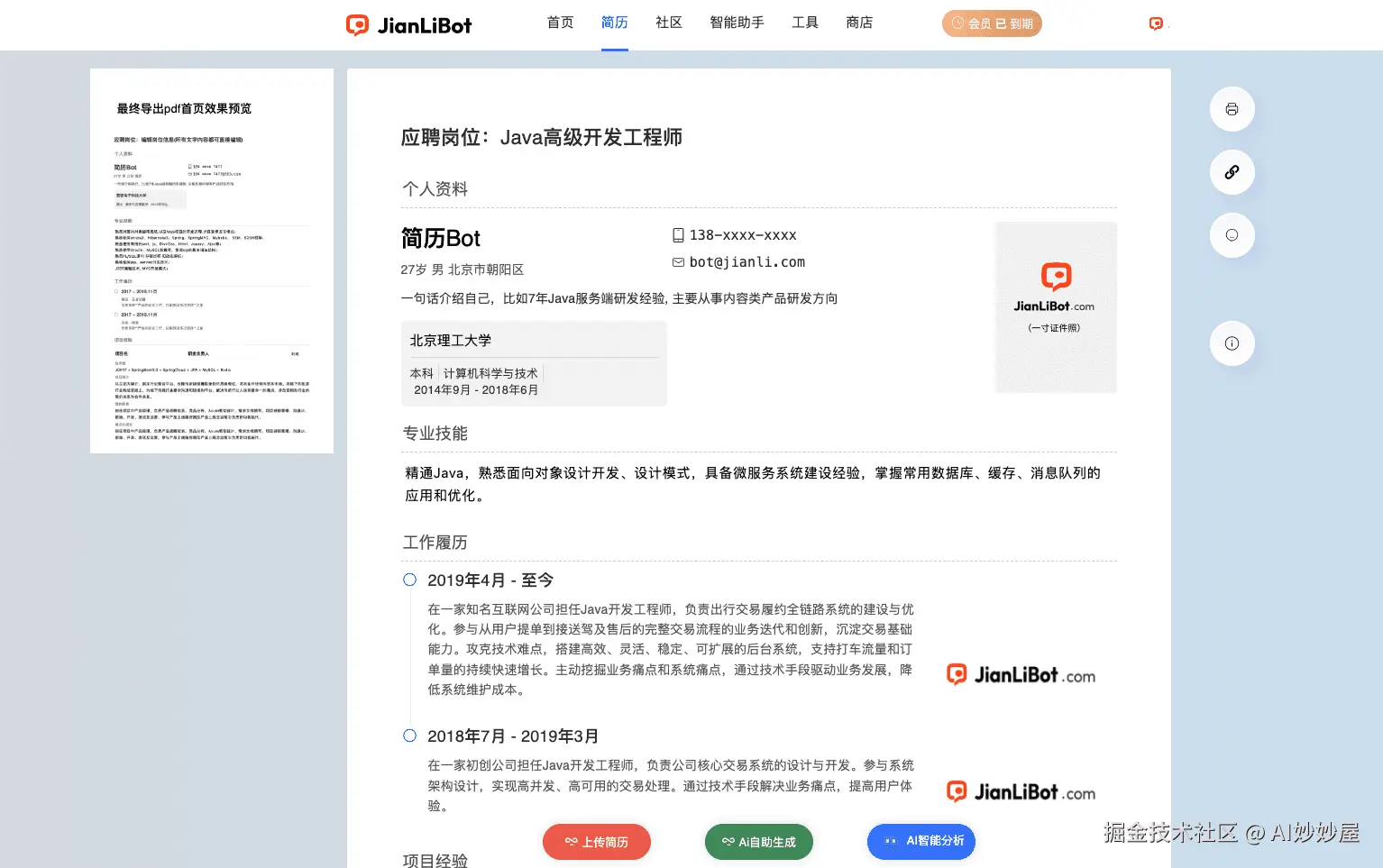 AI简历生成;