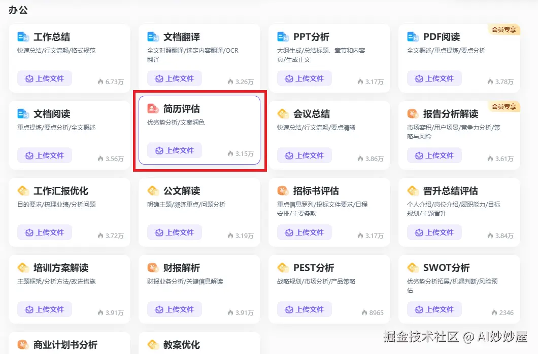 易于操作:操作简单易懂,即使是没有使用过AI工具的用户也能轻松上手。用户只需将简历上传至平台,即可完成评估。无需复杂的操作步骤和专业的技能知识,使得更多用户能够轻松使用。