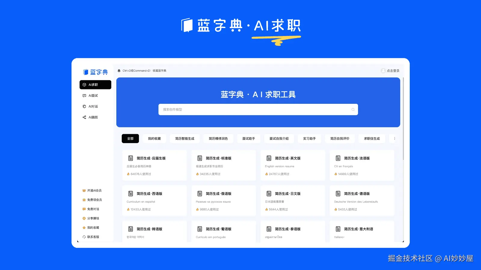 蓝字典AI求职