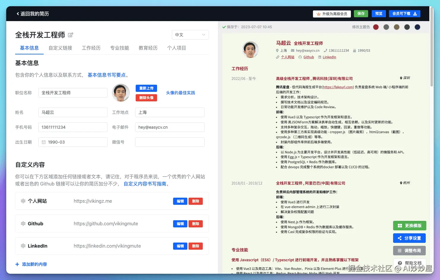 服务于互联网从业者的技术简历生成工具。