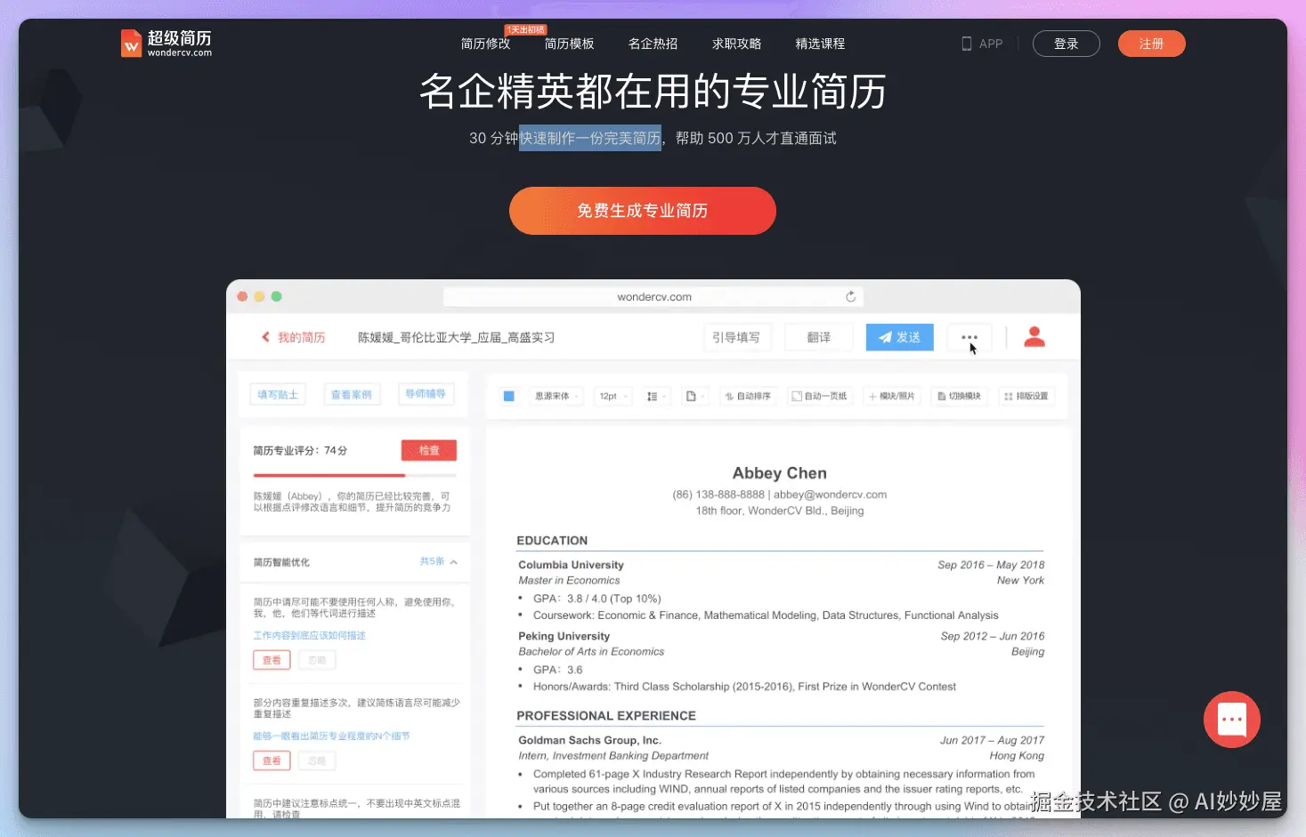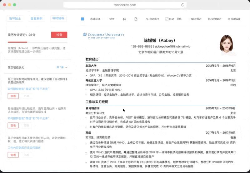 智能优化:自动纠错,让简历脱颖而出。