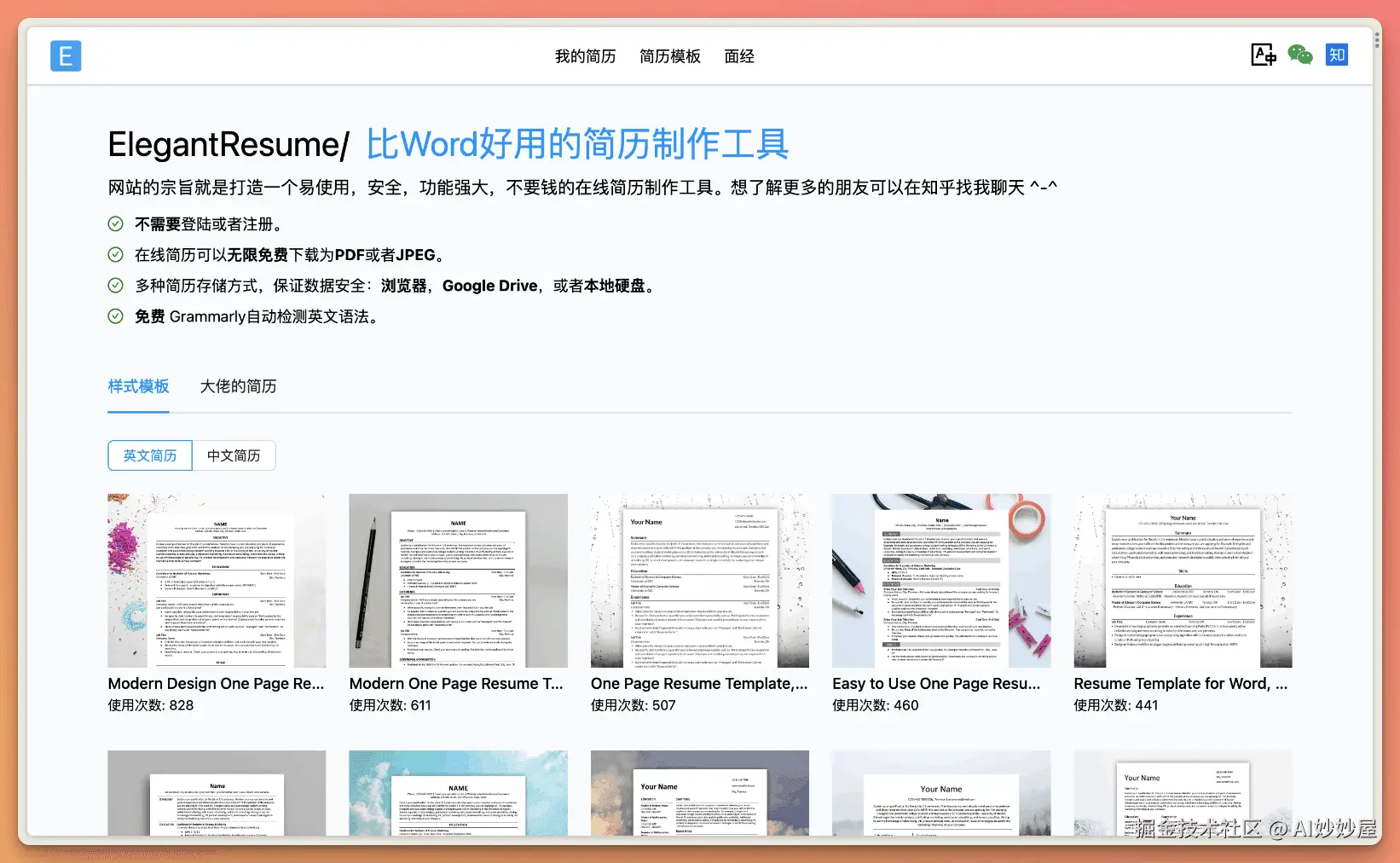 ElegantResume 是一款免费、免注册的简历制作与润色工具,使用体验远超传统使用 Word 制作个人简历。
