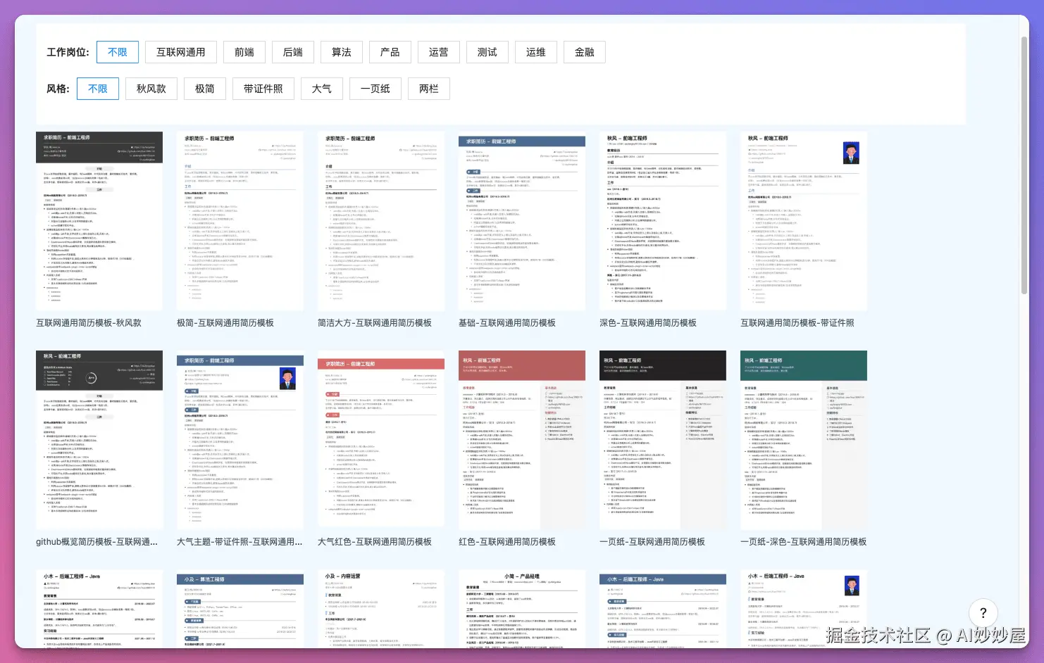 提供了互联网领域多种岗位的专业模版