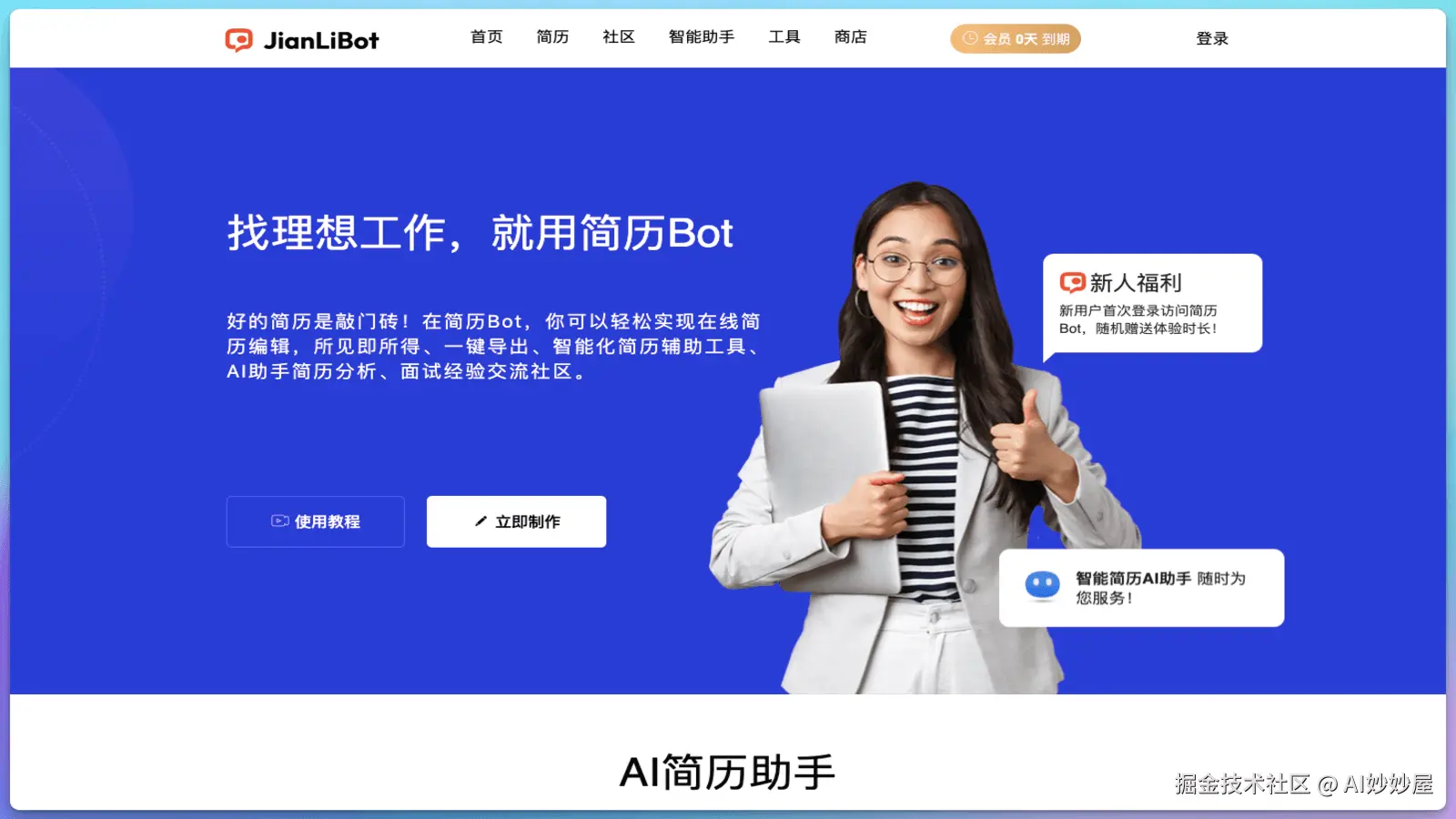 简历Bot是一个一站式面试简历制作平台,致力于帮助用户找到理想工作。
