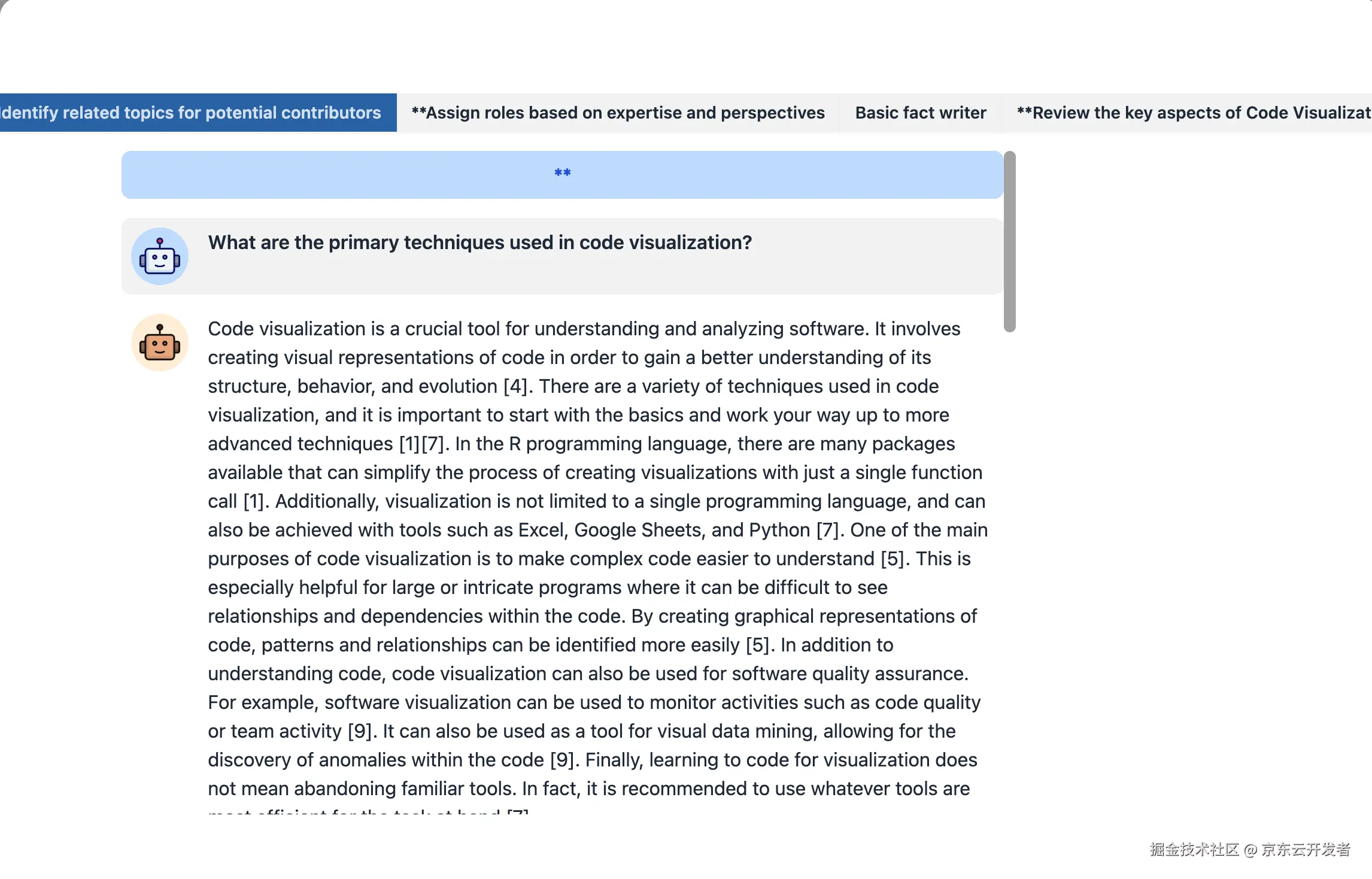 •写作阶段(Writing stage) :有了大纲和参考资料,系统会利用这些资料生成完整的文章,并在文章中加入适当的引用。