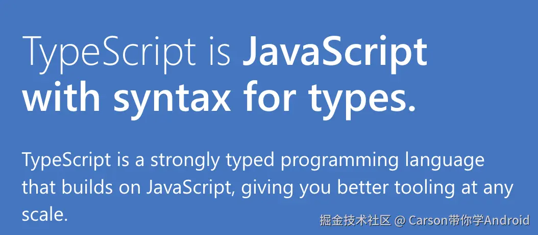 从官网的介绍可知:TypeScript是从JavaScript扩展而来的开发语言。相比于JavaScript,其添加了一大特性:具备类型系统。