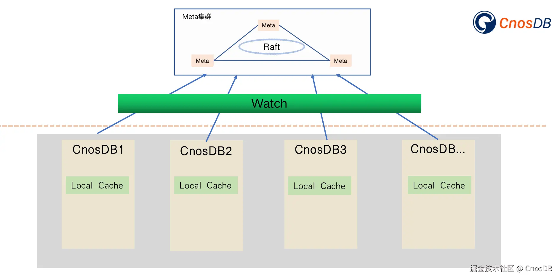 - 每个 CnosDB 节点都会订阅元数据集群的变更事件。
