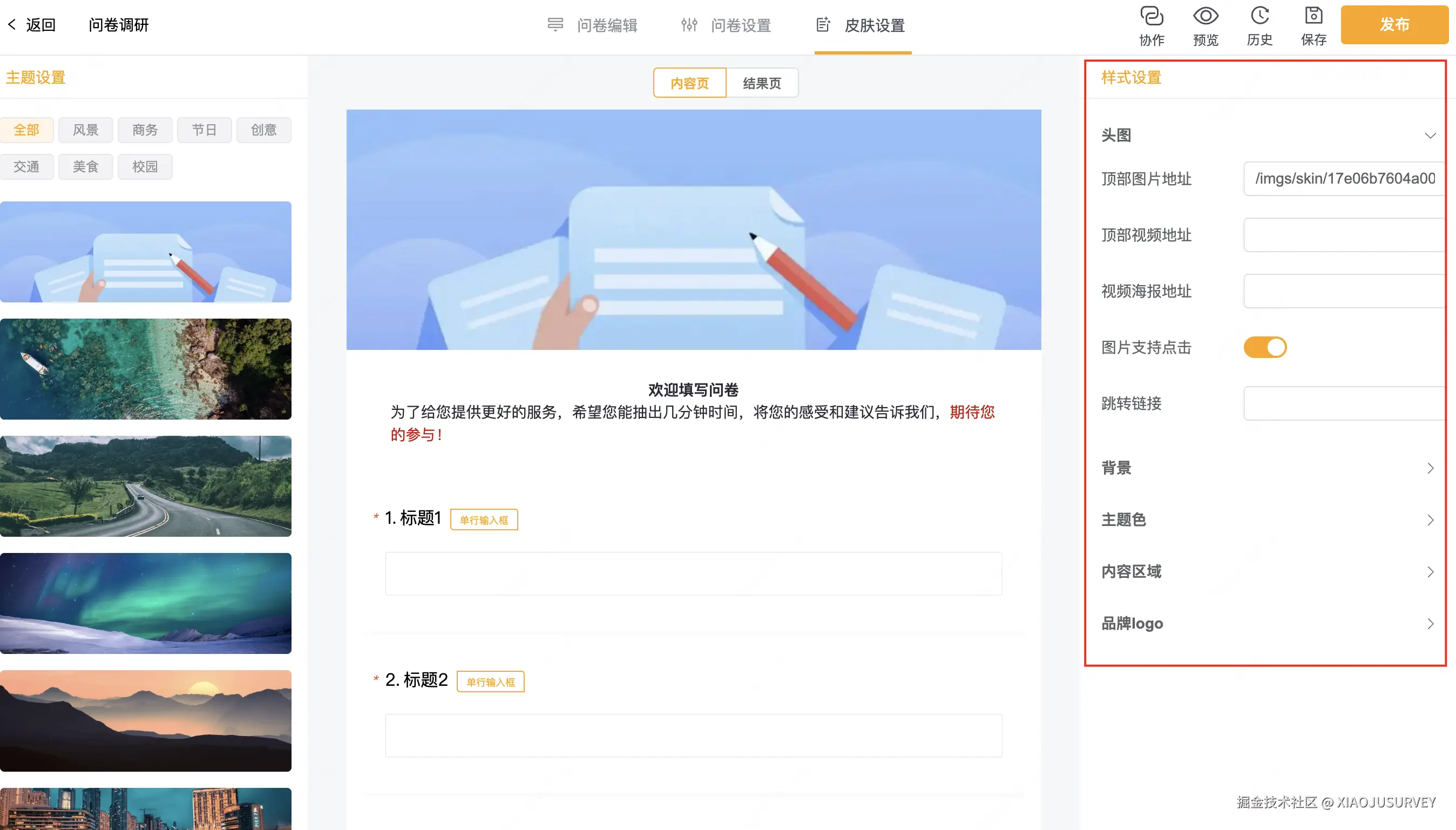 业务设置器同样也是设置问卷或者题型的属性,配置使用跟 问卷属性设置 和 题型属性设置 相同。