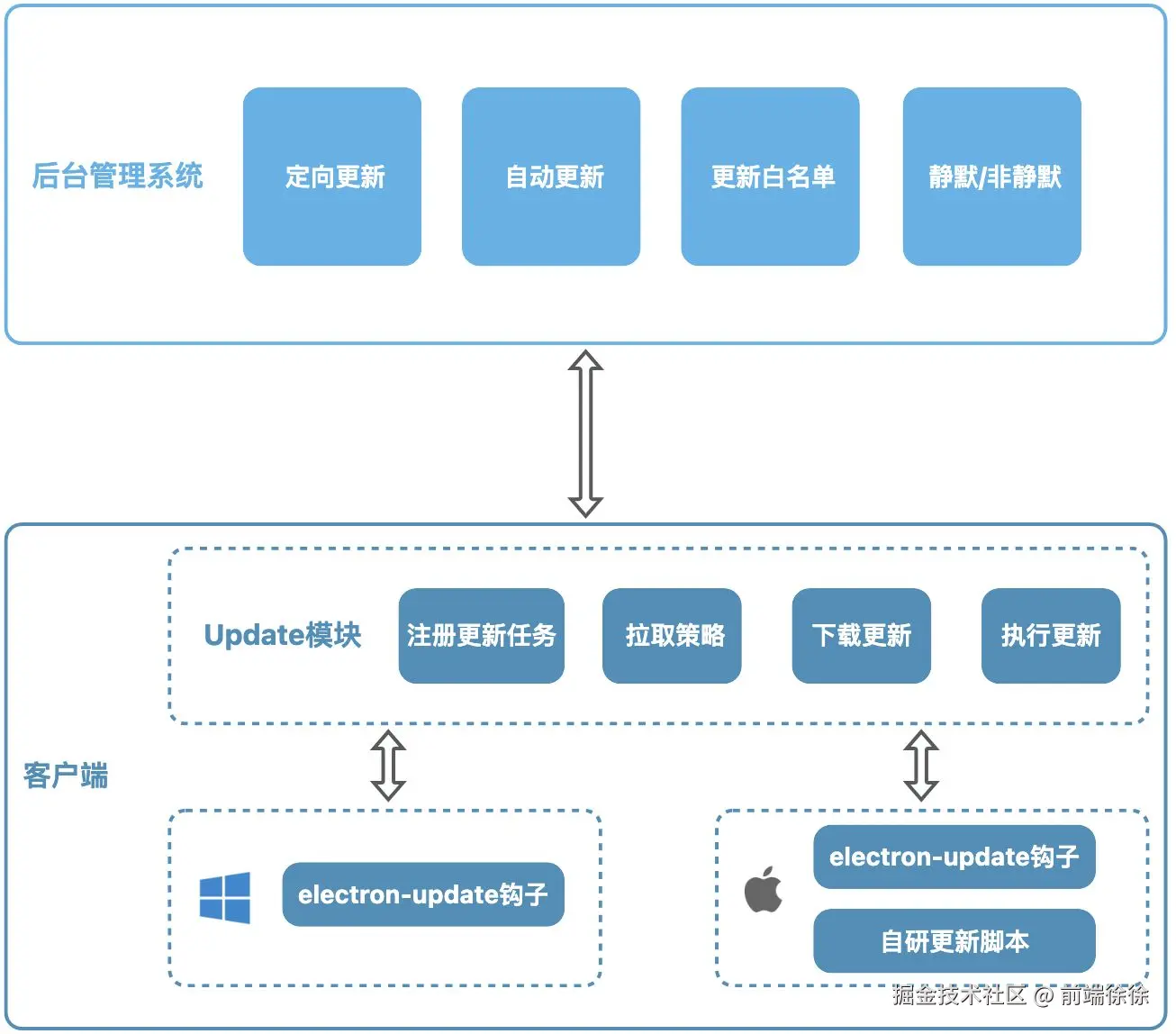 桌面端的软件更新升级是桌面端开发中非常重要的一环,一个好的商业产品必须有稳定好用的解决方案。桌面端的升级跟 C 端 App 的升级其实也是差不多的思路,虽然我所做的产品是公司内部人使用,但是用户也是你面向公司所有用户的,所以跟 C 端产品的解决思路其实是无异的。