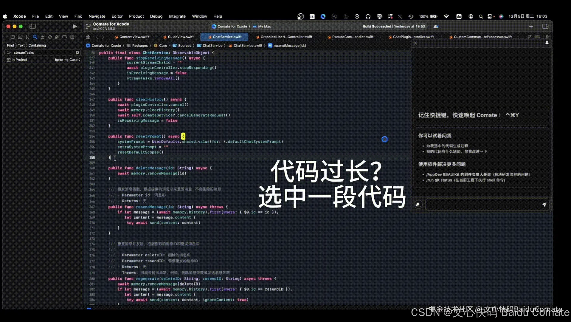 继支持 VS Code、JetBrains 全系列等主流 IDE 后,文心快码 Baidu Comate 在 Xcode 平台适配上线,成为适配 Xcode 平台的国产代码助手!
