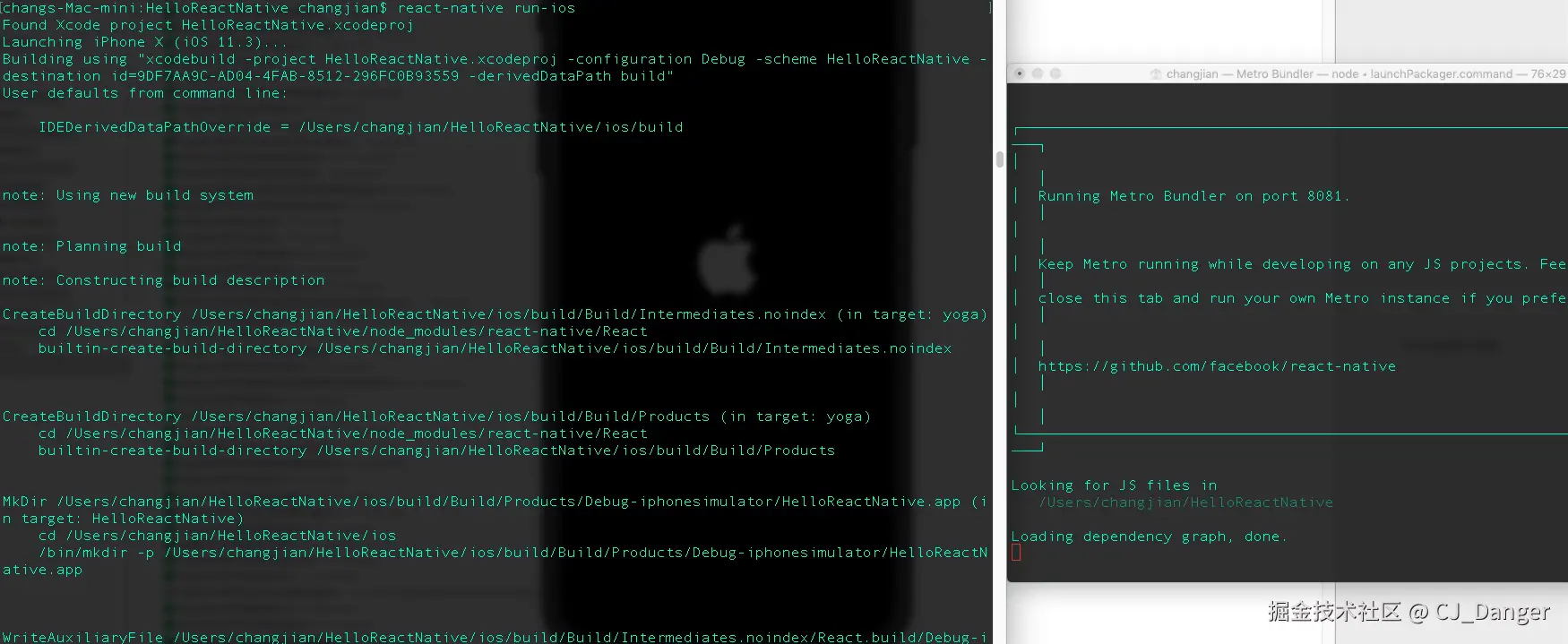 cd到目录,react-native run-ios