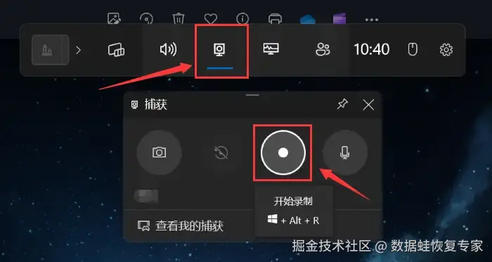 Windows免费的录屏软件肯定少不了Xbox Game Bar,该工具是win10以上系统电脑自带的录屏工具。它方便易用,可以快速进行电脑录屏,但也存在不能录制空白桌面,录制视频文件体积大不便分享、储存等特点。使用方法:在键盘上按下【Win+G】,点击录制按钮即可录制。