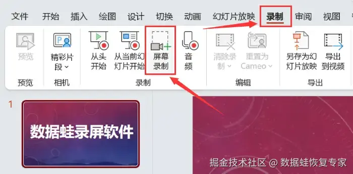 我们日常使用PowerPoint制作PPT文稿,但它还有录屏功能,可以帮助我们录制PPT演示文稿中的操作和声音,但可能会存在录屏音画不同现象。使用PPT进行录制的方法:打开需要录制的PPT文稿,点击上方的 【录制】 ,选择 【屏幕录制】 ,框选好录制范围,进行录制。